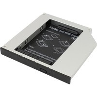 Адаптер вставляется в ноутбук вместо привода оптических дисков высотой 12.7 мм. Для подключения дополнительного HDD/SSD 2.5" с интерфейсом SATA.