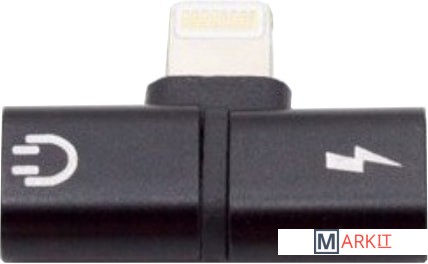 Адаптер с разъемами Lightning для одновременной зарядки и прослушивания музыки.