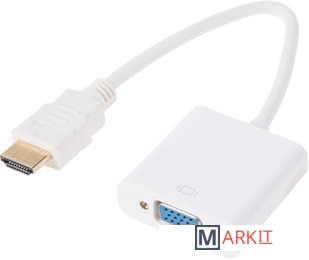 Адаптер преобразует видео+аудио сигнал с разъема HDMI в аналоговый VGA + 3.5 мм аудио.