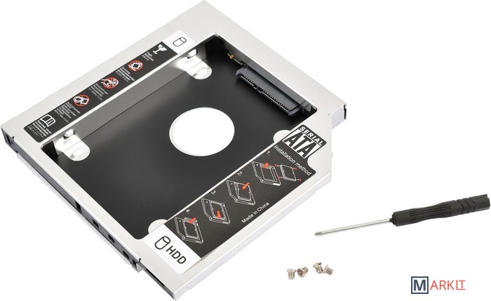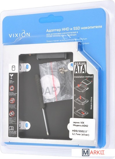 Переходник подойдет для установки жесткого диска HDD/SSD вместо CD-привода в ноутбуки с толщиной 12,7 мм. Адаптер поможет легко оборудовать ваш ноутбук дополнительным накопителем данных. Металлический корпус устройства порадует своего владельца прочностью и долговечностью. VIXION AD62 разработан для моделей дисков с форм-фактором 2.5". Установить устройство можно с помощью винтов для крепления и отвертки, которые входят в комплект.