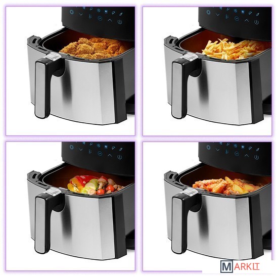 Стильный и компактный аэрогриль Kitfort КТ-2239 может использоваться как аэрогриль, а также как аэрофритюрница, духовка и сушилка и позволяет готовить большинство продуктов с минимальным количеством масла или вовсе без его добавления.Аэрогриль обладает мощностью 1700 Вт, благодаря чему приготовление не займет много времени. Корзина емкостью на 4,5 л хватит, чтобы накормить семью! Готовьте мясо, птицу, рыбу, морепродукты, овощи и даже разнообразную выпечку или пиццу.В аэрогриле есть специальная программа для сушки фруктов, овощей, ягод, грибов и мяса с таймером от 2 до 24 часов и температурой от 40 до 80 °C.Продукты готовятся в специальной корзине, которая вставлена в поддон. Благодаря системе циркуляции горячего воздуха, продукты обжариваются равномерно со всех сторон, получаясь нежными внутри и с хрустящей корочкой снаружи.Аэрогриль оснащен сенсорным управлением. Автоматические программы позволяют использовать готовые шаблоны настроек, разработанные под конкретные блюда. Также есть ручная настройка.Съемный поддон и корзина имеют антипригарное покрытие, благодаря чему они легко чистятся после использования, а блюда можно готовить практически без добавления масла. Поддон с корзиной легко вынимаются и моются.Для удобного и безопасного извлечения корзины конструкцией предусмотрена специальная кнопка, закрываемая защитной крышкой.Аэрогриль КТ-2239 имеет оригинальную форму и лаконичный дизайн. Благодаря форме корпуса он отлично впишется в вашу кухню и не займёт много места.Длина шнура: 0.6 м.