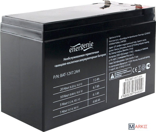 Markit » Аккумуляторы для ИБП » Аккумулятор для ИБП EnerGenie BAT-12V7.2AH