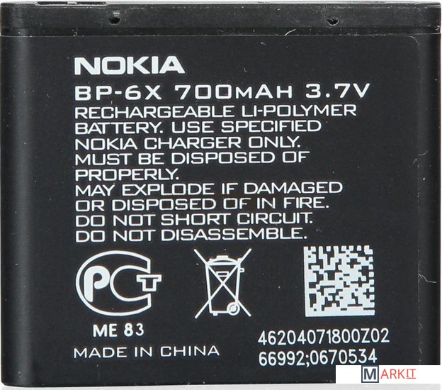 Markit » Аккумуляторы для телефонов » Аккумулятор для телефона Копия Nokia BP-6X