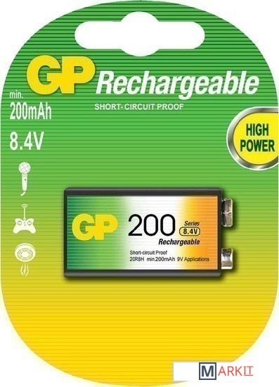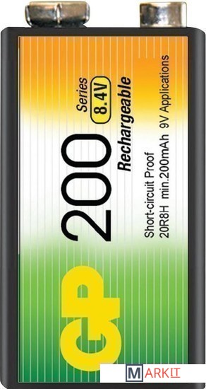 Markit » Батарейки, аккумуляторы, зарядные » Аккумулятор GP 9V 200mAh