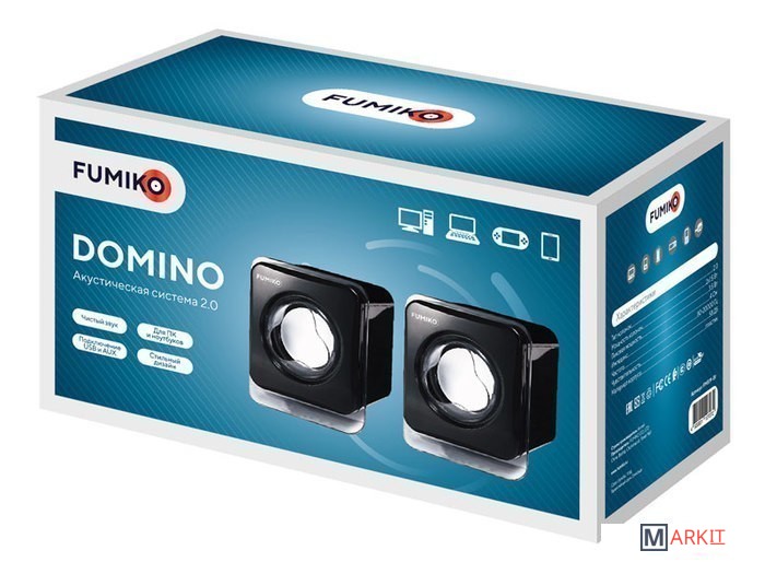 Колонки 2.0 - отличное решение для каждого, кому важен качественный и чистый звук. Модель FUMIKO DOMINO отлично подходит как для прослушивания музыки, так и для просмотра фильмов. Компактное устройство особенно пригодится владельцам ноутбуков, встроенные динамики которых не способны выдать достаточную мощность и громкость. Новейшие технологии в производстве комплектующих позволили достичь хорошего уровня громкости и чистоты звучания. С источником звука они соединяются с помощью кабеля с разъемом 3.5 мм Jack. Питание происходит от USB - больше никаких лишних проводов. Любимая музыка в громком звучании теперь всегда будет с вами. Длина кабеля позволяет подключить колонки к разъемам на задней панели персонального компьютера.Длина кабеля с разъемом 3.5 мм Jack - 60 смДлина кабеля с разъемом USB - 60 смДлина провода между колонками 50 см