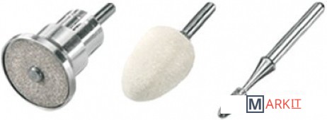| Комплектация | Мелкозернистый сапфировый диск. Войлочный конус. Сапфировая фреза "пламя". |