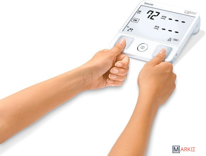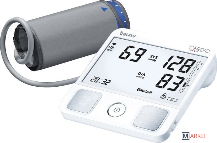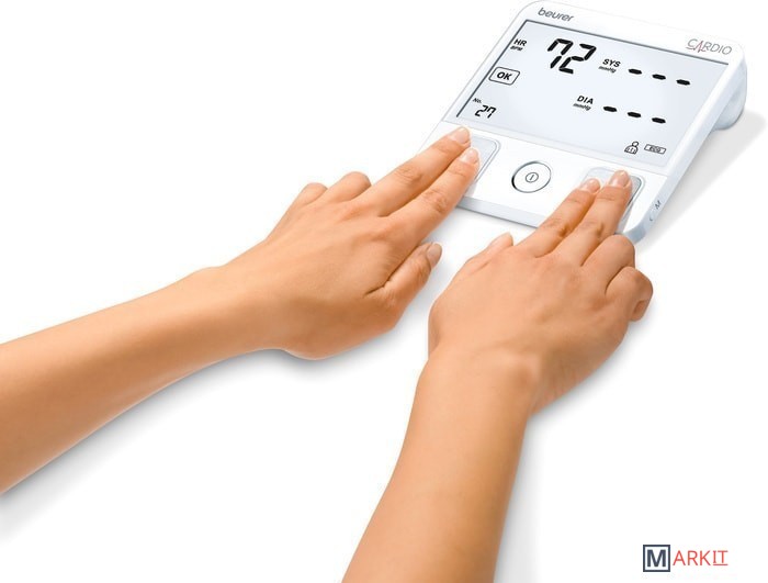 Один прибор — 2 функции: прибор для измерения кровяного давления BM93 дополнительно оснащен пальцевым сенсором ЭКГ, что позволяет не только измерять кровяное давление, но и делать электрокардиограмму.Основные особенности и преимущества:упрощенное измерение ЭКГ;оптимальный контроль кровяного давления и сердечного ритма с помощью приложения;расширенное распознавание аритмии (в частности, мерцание предсердий и экстрасистолия);одноканальная ЭКГ для записи сердечного ритма;беспроводная передача результатов измерения;подробный расчет среднего значения через мобильное приложение beurer HealthManager или HealthManagerPro;две пользовательские ячейки памяти на 60 измеренных значений каждая;индикатор риска;для окружности плеча от 22 до 42 см;дата и время;автоматическое отключение;сообщение при ошибках пользования;бесплатная загрузка приложения beurer HealthManager или HealthManagerPro;совместимость с iOs 10.0 и выше и с Android 5.0 и выше, а также с Bluetooth® начиная с версии 4.0.Прибор ВМ 93 не предназначен для клинической неотложной диагностики. Независимо от диагнозов прибора при проявлении симптомов, указывающих на тяжелую стадию заболевания сердца, необходимо срочно проконсультироваться у врача.