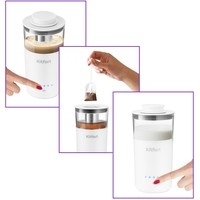 Для приготовления молочной пенки, кофе, чая!Капучинатор «3 в 1» КТ-778 – это устройство для приготовления молочной пенки, для напитков на базе эспрессо: капучино, латте, мокиато. А данная модель капучинатора многофункциональна и поможет также заварить разные виды чая, кофе или смешать напитки!Простой процесс без вашего участияКапучинатор - идеальный выбор для тех, кому не хочется осваивать процесс самостоятельного вспенивания молока, следить за температурой, добиваться плотной однородной пены. Достаточно наполнить капучинатор нужным количеством молока и нажать кнопку.6 режимов работыУправление капучинатора сенсорное, устройство работает в 6 режимах: может заварить чай улун или чёрный чай, приготовит кофе, вспенит молоко или смешает напитки. Переключение между режимами осуществляется нажатием кнопки выбора режима.Легко мыть и хранитьВсе части капучинатора съёмные и поэтому легко очищаются. Прибор удобно хранить благодаря компактному размеру. Лаконичный и минималистичный дизайн капучинатора станет отличным дополнением вашей кухни.Для смешивания и вспенивания!Насадка для смешивания и спенивания используется в режимах: «Кофе», «Взбивание молока» или «Смешивание». Для взбивания молочной пенки не превышайте максимальную отметку, указанную внутри.Прозрачное окошко для наблюденияЧерез прозрачную верхнюю часть корпуса можно наблюдать за процессом приготовления молочной пенки, кофе или чая. Капучинатор автоматически отключается, когда процесс приготовления выполнен.