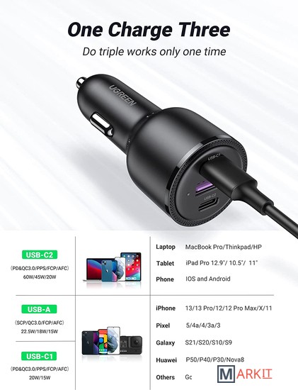Markit » Зарядные устройства » Автомобильное зарядное Ugreen CD239 20467