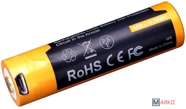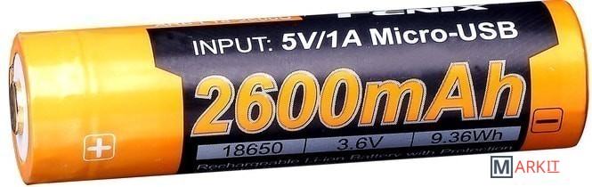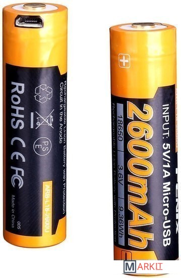 Markit » Батарейки, аккумуляторы, зарядные » Батарейка Fenix 18650 Li-Ion 2600mAh Micro USB