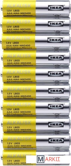Markit » Батарейки, аккумуляторы, зарядные » Батарейка Ikea Алкалиск AAA 10 шт. 003.622.99