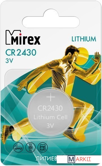 Markit » Батарейки, аккумуляторы, зарядные » Батарейка Mirex CR2430 3V 1 шт (1/40/240) ecopack 23702-CR2430-E1