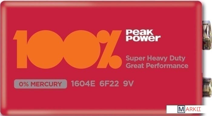 Markit » Батарейки, аккумуляторы, зарядные » Батарейка PeakPower 6F22/PP1604E-2S1