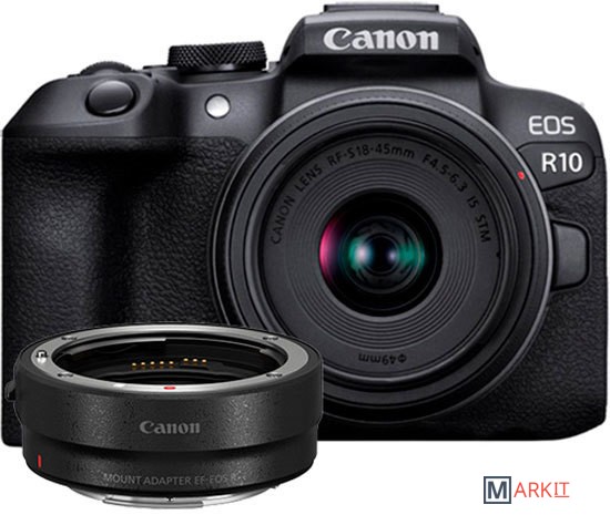 Markit » Фотоаппараты » Беззеркальный фотоаппарат Canon EOS R10 RF-S 18-45mm F4.5-6.3 IS STM + адаптер крепления EF-EOS R