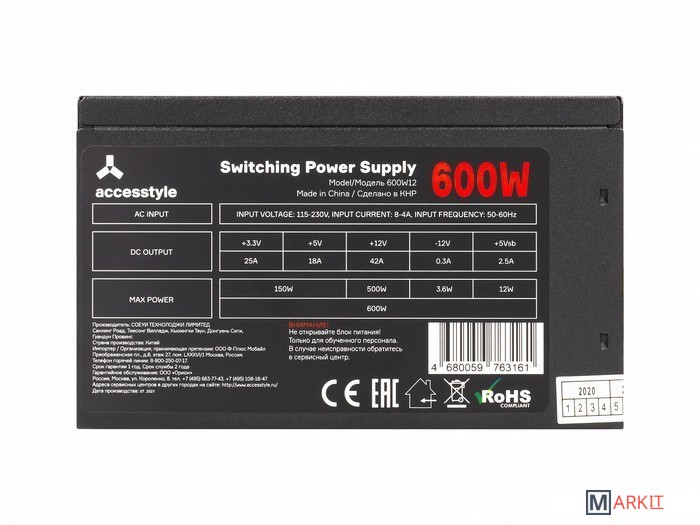 Markit » Блоки питания » Блок питания AccesStyle 600W12