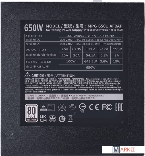 Markit » Блоки питания » Блок питания Cooler Master XG650 Platinum MPG-6501-AFBAP-EU