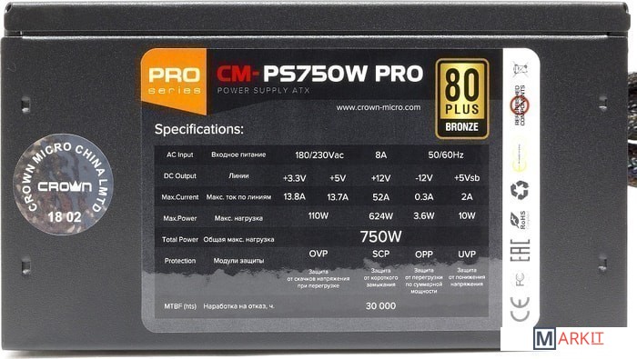 Markit » Блоки питания » Блок питания CrownMicro CM-PS750W Pro