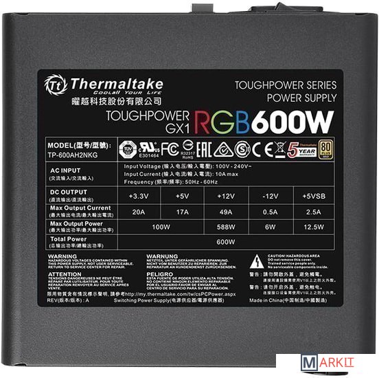 Markit » Блоки питания » Блок питания Thermaltake Toughpower GX1 RGB 600W Gold TP-600AH2NKG