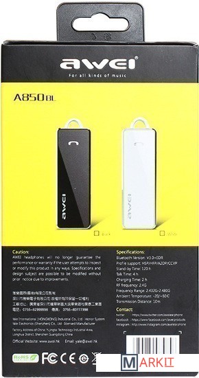 Markit » Bluetooth-гарнитуры » Bluetooth гарнитура Awei A850BL (черный)