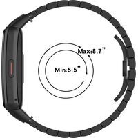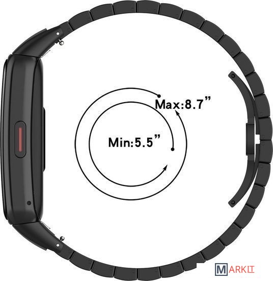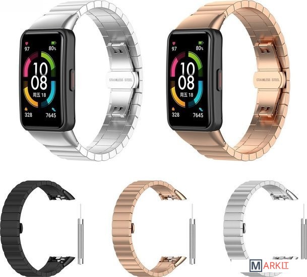 Металлический браслет из звеньев-блоков. Уникальный внешний вид придаст вашим часам Huawei Band 6 или Honor Band 6 индивидуальность и стиль. Надёжная застёжка не позволит часам случайно соскользнуть с руки.