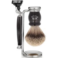 Набор из коллекции MOXON с помазком Tasso II / Pure badger из натурального превосходного качества барсучьего волоса, станок Gillette Mach 3 Turbо. Материал — чёрная перламутровая смола.