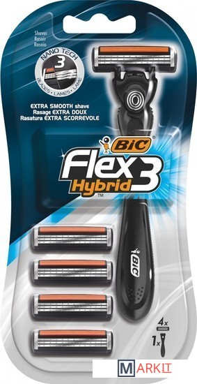 Markit » Бритвенные станки и лезвия » Бритвенный станок BIC Flex Hybrid с 4 сменными кассетами