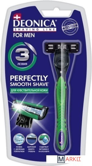 Бритва для мужчин с 3 лезвиями мирового класса произведена в США. Технология 3 лезвийной бреющей поверхности мужской бритвы Deonica легко срезает волоски, делая бритье максимально комфортным. Следует контурам твоего лица для лучшего бритья. Всего одно движение бритвой для невероятно чистого бритья и шелковистой гладкости кожи. Лезвия для бритвы имеют двойное керамическое покрытие, что гарантирует более точное и чистое бритье. Гипоаллергенная смазывающая полоска с Алоэ Вера, витамином Е, маслом Ши и Жожоба нежно ухаживает за кожей и обеспечивает безупречное скольжение. Пластиковая рельефная ручка CLASSIC имеет резиновые вставки для удобного обхвата ручки. Станок для бритья не будет выскальзывать у вас из рук. Уникальная система бритвенных станков Deonica позволяет использовать любые кассеты для бритвы Deonica на 3, 5 или 6 лезвий. Бритвенная серия Deonica это гладкое и комфортное бритье без раздражений даже на самой чувствительной коже!
