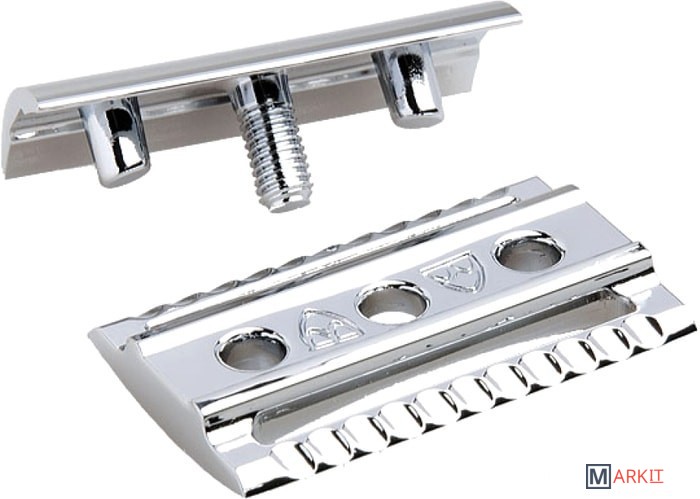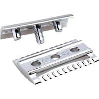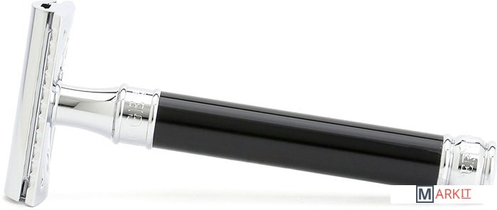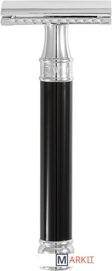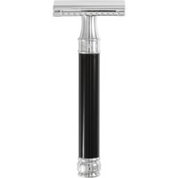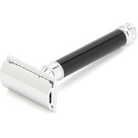 Элегантный традиционный станок с удлиненной ручкой цвета черной смолы. Бритва с закрытым гребнем и состоит из трех частей. Хромированные элементы украшают бритву и делают ее не только желанным аксессуаром, но и превосходным подарком. Бритва предназначена для ежедневного бритья. Долговечность бритвы позволит сэкономить на бритье не одну тысячу рублей.Длина ручки - 102 мм.