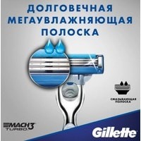 Мужские бритвы Gillette Mach3 Turbo оснащены 3 лезвиями прочнее, чем сталь, которые дольше сохраняют остроту (по сравнению с Sensor3). Бритва Mach3 Turbo с более острыми режущими лезвиями (первые 2 лезвия по сравнению с Sensor3) рассчитана на 15 процедур комфортного бритья. Эти бритвы Gillette оснащены смазывающей полоской длительного действия, которая обеспечивает невероятное скольжение. Бритва Mach3 Turbo оснащена защитным микрогребнем Skin Guard, который растягивает кожу и подготавливает волоски к срезанию. Бритва оснащена превосходной сбалансированной ручкой Mach3 оптимального веса для комфортного бритья. К мужской бритве Mach3 Turbo подходят все сменные кассеты Mach3.