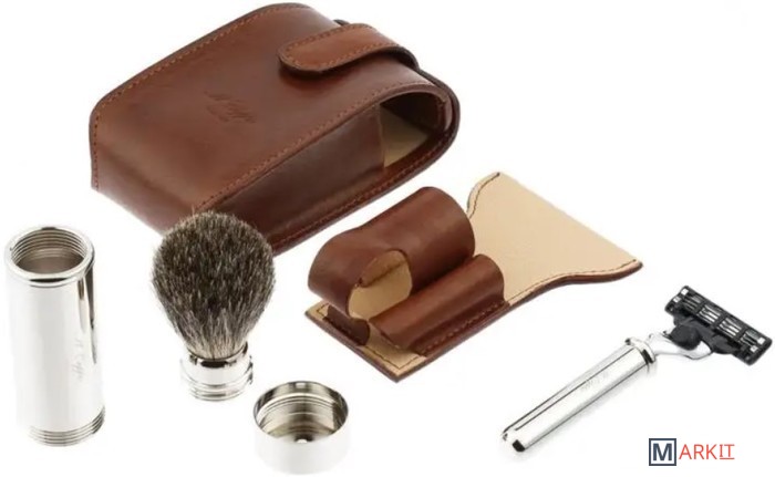 Дорожный бритвенный набор IL Ceppo Firenze SV1203MMХарактеристики:• дорожный помазок для бритья в тубусе с натуральным барсучьим ворсом категории «Grey Badger»• дорожный бритвенный станок, совместимый с кассетами Gillette Mach3• чехол из натуральной кожи ручной работыПутешествия, деловые поездки, командировки — неотъемлемая часть жизни мужчин. Чтобы в любой ситуации выглядеть безупречно, в арсенале каждого мужчины должен быть качественный дорожный бритвенный набор.Представляем вашему вниманию идеальные дорожные наборы для путешествий. Элегантные аксессуары для бритья высокого качества и функциональности. Различные комплектации и системы бритья. Каждый дорожный набор обеспечивает комфортную процедуру ухода в поездке и исключительный результат — идеально гладкое бритьё и безупречный образ.Ключевые особенности мужских бритвенных наборов для путешествий:• компактные размеры и лёгкий вес• дорожный чехол изготовлен вручную из натуральной кожи, стойкой к износу• складной помазок в тубусе из никелированной латуни• эргономичная форма ручки бритвенного станкаЧехол ручной работы из коричневой натуральной кожи, изготовленный во флорентийском стиле, плотно вмещает бритву и помазок. Помазок помещается в тубус с помощью удобного поворотного механизма и закрывается колпачком, что отлично защищает его в дороге. Кисть помазка в дорожных наборах изготовлена из натурального барсучьего ворса. Кисти этого типа взбивают отличную плотную пену, это возможно благодаря хорошей способности барсучьего ворса удерживать влагу. Исключительная мягкость барсучьего ворса не вызывает дискомфорта при нанесении пены даже у обладателей чувствительной кожи. Бритвенный станок из никелированной латуни c лезвием Gillette Mach3 обеспечивает прекрасное бритье, оставляя кожу гладкой и мягкой.С дорожными наборами IL Ceppo Firenze ежедневное бритье и уход в поездке станут по-настоящему легкими и профессиональными.