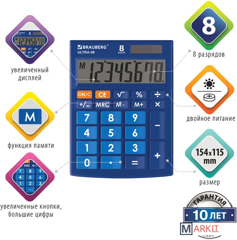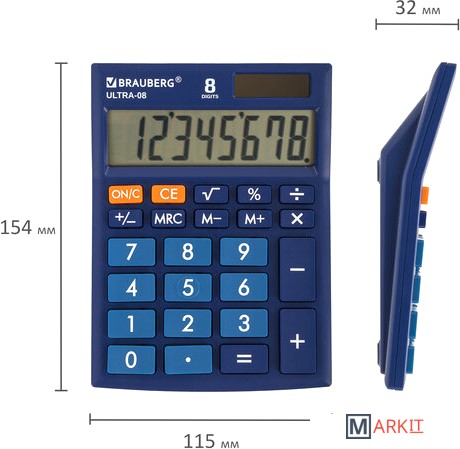 Markit » Калькуляторы » Бухгалтерский калькулятор BRAUBERG Ultra-08-BU 250508 (синий)