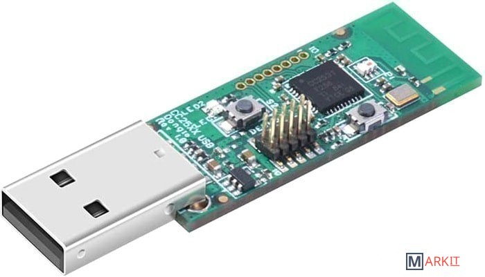 USB-донгл CC2531 поставляется с предварительно загруженной прошивкой CC2531ZNP-Prod и совместим с модулем Zigbee2MQTT с открытым исходным кодом, который представляет собой мост для управления Zigbee устройствами через MQTT после подключения к ПК, Raspberry Pi или другому Linux SBC.• MCU – микроконтроллер беспроводной связи Texas Instruments CC2531F256 Zigbee и IEEE 802.15.4 с 8 Кб ОЗУ, 256 Кб флэш-памяти • Расширение – 8-контактных отверстий с 8 входами / выходами• Разъем отладки• Размеры – 5.6 x 1.6 x 0.7 см