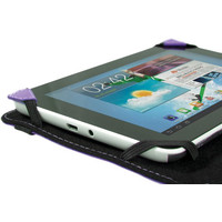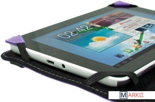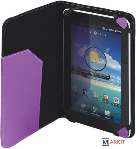 Открывается как книжка.Имеет внутренний карман.Резиновые уголки надежно удерживают планшет на месте.Широкий эластичный ремешок надёжно закрывает чехол.Имеет мягкую внутреннюю подкладку.Защищает от повреждений, ударов и царапин.