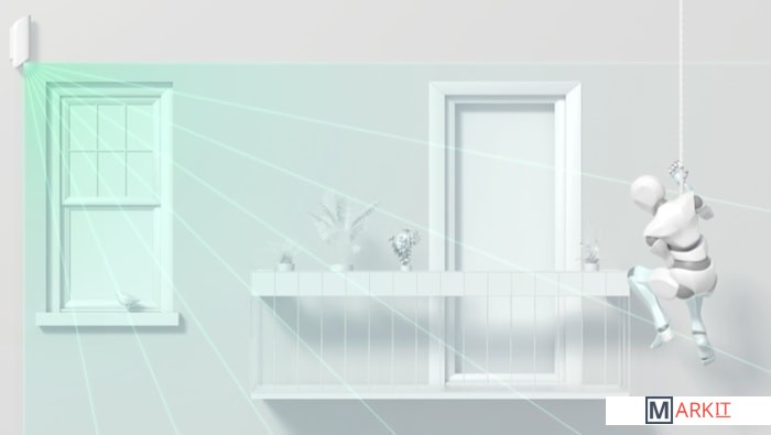 Датчик движения с узким углом обзора для помещений. Охраняет окна, двери и ценности.