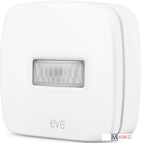 Датчик движения для Apple HomeKit.Диапазон рабочих температур составляет от -18 до +55 °C.Угол срабатывания сенсора составляет 120°. Дальность срабатывания – до 9 м с высоты установки 2 м.Чувствительность можно выставлять в три уровня через приложение Eve.
