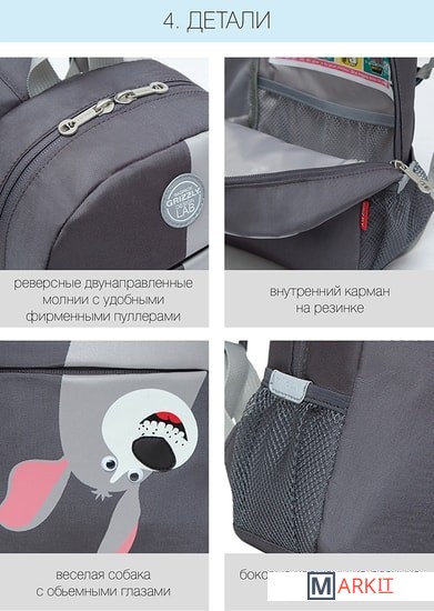 Стильный, легкий и практичный рюкзак Grizzly станет незаменимым аксессуаром для ребенка. С ним очень удобно ходить в садик или на развивающие кружки, ездить в гости или просто брать его на прогулку. В рюкзак поместиться все необходимое: и блокнот, и игрушка, и контейнер с едой. А специальный карман из сетки с резиночкой не даст рассыпаться карандашам и фломастерам или сломаться хрупким предметам. Впереди есть кармашек на молнии для разных мелочей, а в боковые карманы можно поместить бутылочку с водой. Имея такой аксессуар, ребенок быстрее приучится к порядку и ответственности за свои вещи. Мягкая спинка и регулируемые лямки делают рюкзачок очень комфортным, а светоотражающие элементы со всех сторон обеспечивают дополнительную безопасность в условиях недостаточной видимости. Материал с водо- и грязеотталкивающей пропиткой. Есть ручка для переноски. Рюкзак можно стирать в стиральной машине.