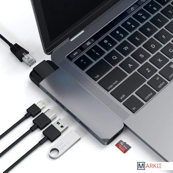 сквозная зарядка устройства, LAN-адаптер, подключение внешнего монитора