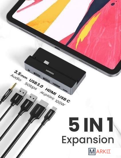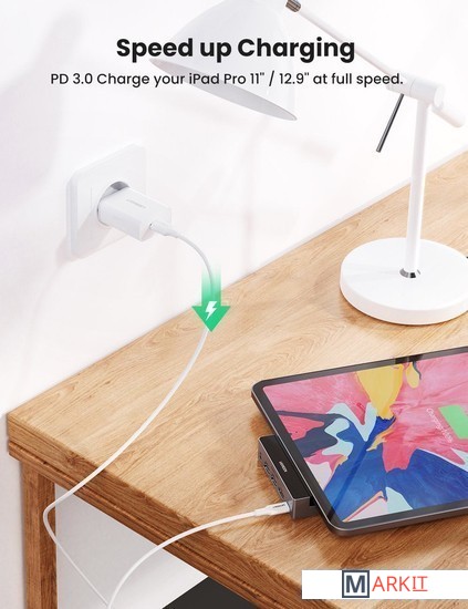 USB-C хаб для iPad Pro 2018, 2020 12.9" и 11". Поддерживает iPad Pro M1.