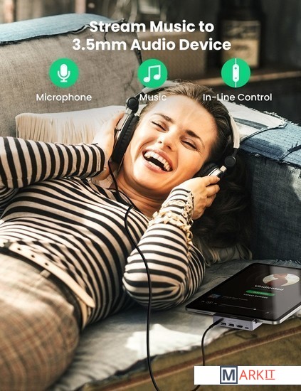 Все разъемы на адаптере USB-A 3.2 Gen1 (5 Гбит/с), HDMI, USB-C (только для зарядки), 3.5 мм jack