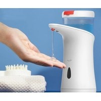 Компактный дозатор для жидкого мыла с ИК-датчиком, осуществляющим автоматическую подачу средства после поднесения руки. Емкость составляет 250 мл, что позволяет использовать устройство при полном заполнении примерно 200 раз.Подача жидкости в виде геля.