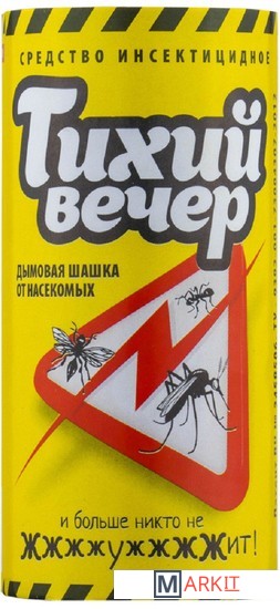 Шашка дымовая инсектицидная, патент RU 2458506Мощное фумигационное средствоборьбы с насекомыми внутри помещений и на открытом воздухе. Выделяет в короткое время большое количество действующего вещества в виде дыма. Легкая обработка труднодоступных мест и объектов без участия квалифицированного персонала итехнических средств. Обладает острым инсектицидным действием на имаго комаров и мух, комплекс гнуса (мошки, слепни, мокрецы), тараканов, клопов,блох, моль, муравьев, крысиных клещей. Обладает остаточной активностью до 14 суток. Обеспечивает надежную гибель насекомых в кратчайшее время, в зависимости от вида. Действующее вещество - 10% перметрин, синтетический перетроид второго поколения с длительным остаточным действием, сильный инсектицид, неток-сичный для теплокровных (людей и домашних животных).