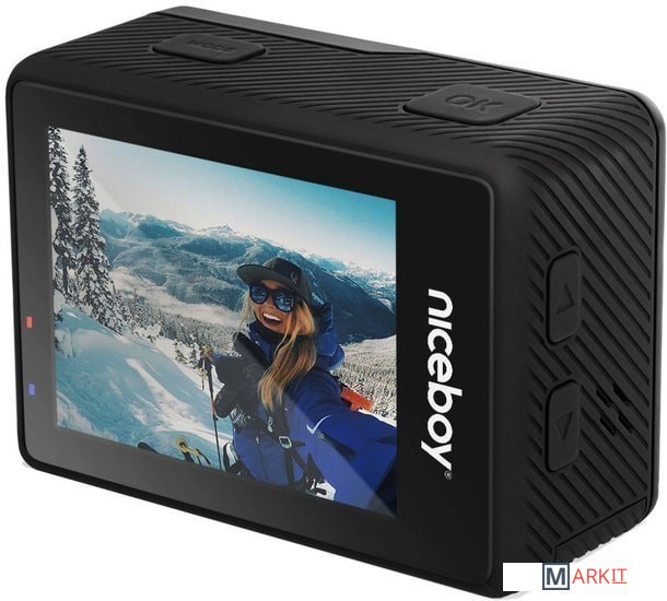 Камера обладает разрешением FullHD при 60 кадрах в секунду или интерполированным 4K пр 30 кадрах в секунду. Она обладает такими функциями, как замедленная или покадровая съемка, и отлично фотографирует – фотографии имеют разрешение до 16 Mp. Ею можно управлять по Wi-Fi через приложение в телефоне, а любители водных видов спорта могут с помощью чехла снимать под водой.