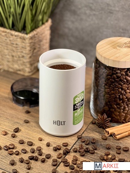 Кофемолка оснащена новым высокоэффективным ЭКО мотором, потребляющим 100 Вт при максимальной нагрузке и выдающим мощность равную 180 Вт обычного мотора.