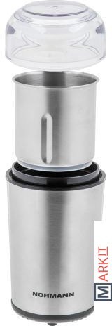 Съёмная чаша;Для измельчения кофе и специй;Заточенный нож;Чаша и нож из нержавеющей стали;Прозрачная крышка;Щёточка для очистки в комплекте;Размеры: 21.5x10.5x10.5 см.