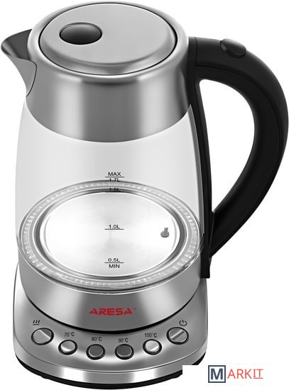 Чайник электрический ARESA AR-3460, объемом 1,7 л.– прибор который соответствует всем сертификационным нормам. Чайник ARESA AR-3460 прошел контроль в лаборатории при Министерстве Здравоохранения Республики Беларусь и не выделяет в воду вредных веществ. Модель может быть использована при приготовлении смесей для детского питания. Корпус чайника ARESA AR-3460, состоит из высококачественного боросиликатного закаленного стекла. Благодаря чему он не пожелтеет во время использования и прослужит долгие годы. Чайник ARESA AR-3460 оборудован высококачественным контроллером STRIX – системой, которая отвечает за отключения чайника при закипании. Этот контроллер позволит чайнику прослужить в 5 раз дольше, чем более дешевые аналоги. LED подсветка позволит четко контролировать процесс закипания и уровня воды в приборе. Чайник ARESA AR-3460 обладает регулировкой температуры на платформе изделия. 4 ступени регулировки (70, 80, 90, 100) позволят добиться необходимой температуры быстро и качественно. ARESA – белорусский бренд бытовой техники. Наша техника проходит сертификацию на территории Республики Беларусь в едином центре ГОССТАНДАРТА. Кроме сертификатов таможенного союза, полученных на территории Республики Беларусь, техника ARESA соответствует всем нормам сертификации Европейского Союза и поставляется на его территорию. Приобретая нашу технику, вы заботитесь о здоровье и безопасности вас и ваших близких.