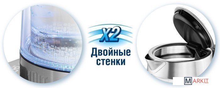 Двойные стенки чайника - эффект термоса.
