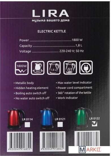 Markit » Электрочайники и термопоты » Электрический чайник LIRA LR 0121