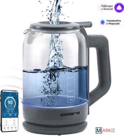 Markit » Электрочайники и термопоты » Электрический чайник Polaris PWK 1720CGLD Wi-Fi IQ Home (серый)