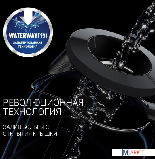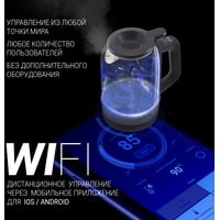 Wi-Fi управление без дополнительного оборудования.Запатентованная технология залива воды "WATERWAY PRO" для удобного залива воды в чайник без открытия крышки.Панель управления на ручке.Cъемная крышка для максимально удобной чистки чайника.