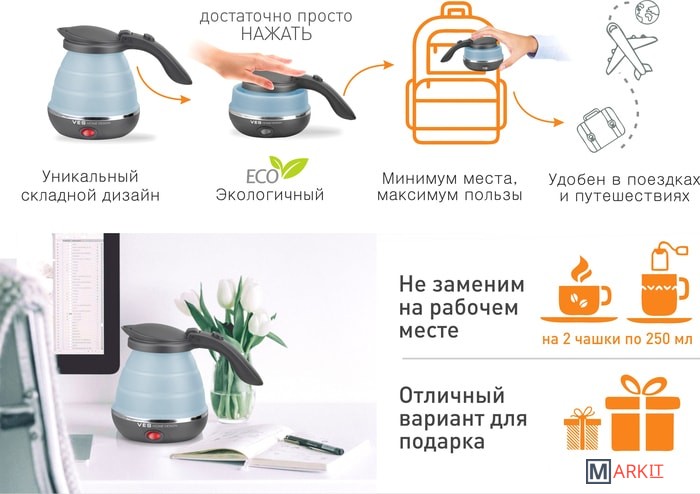 Защита от включения без водыЗащита от перегреваУникальный складной дизайн